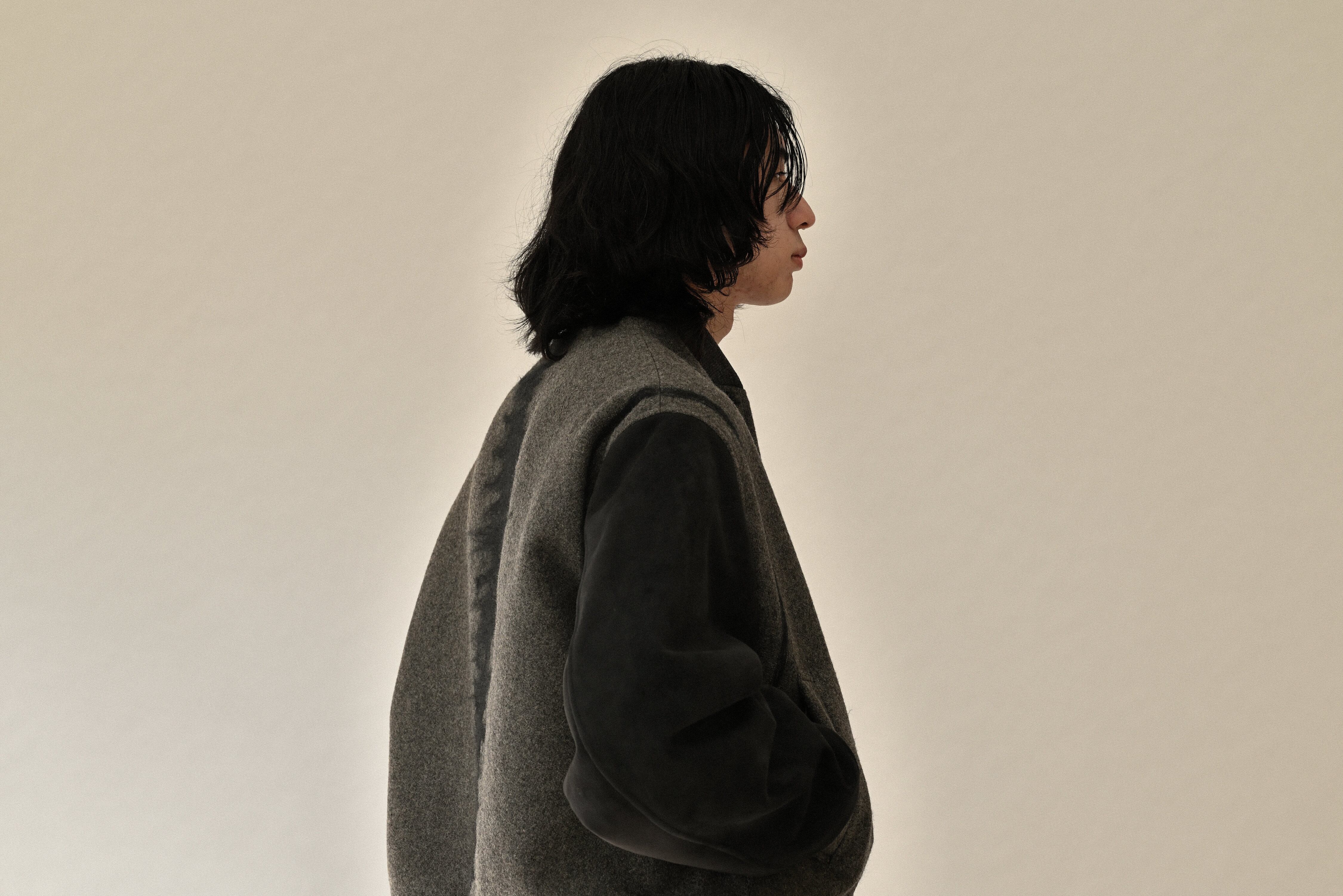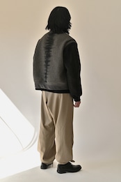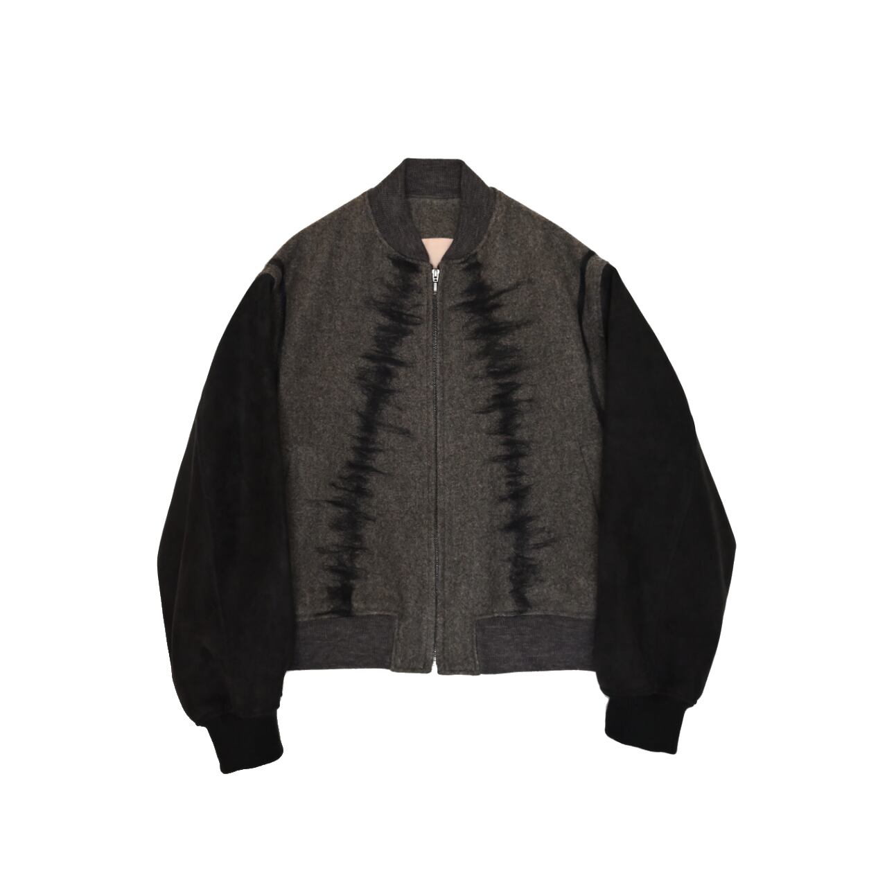 ボディにはビンテージのような粗さのあるウール混紡素材を、袖には牛ヌバック革を使用。