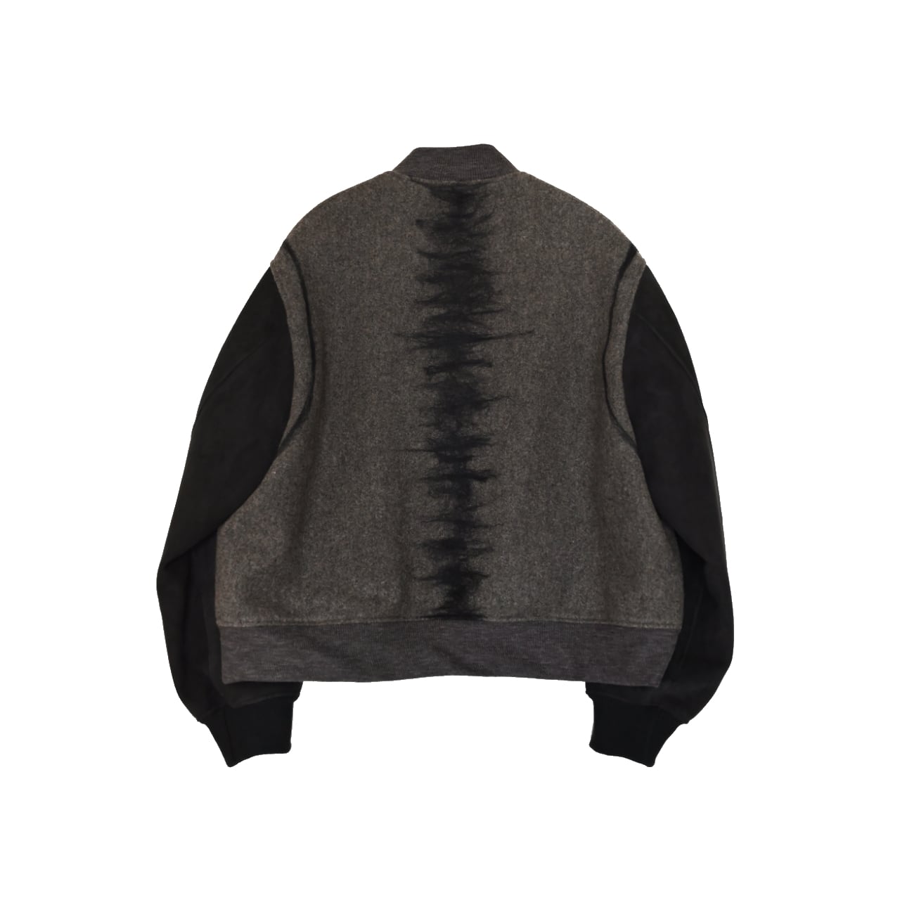 身頃の前面と背面にニードルパンチ刺繍を施したスタジアムジャンパー。