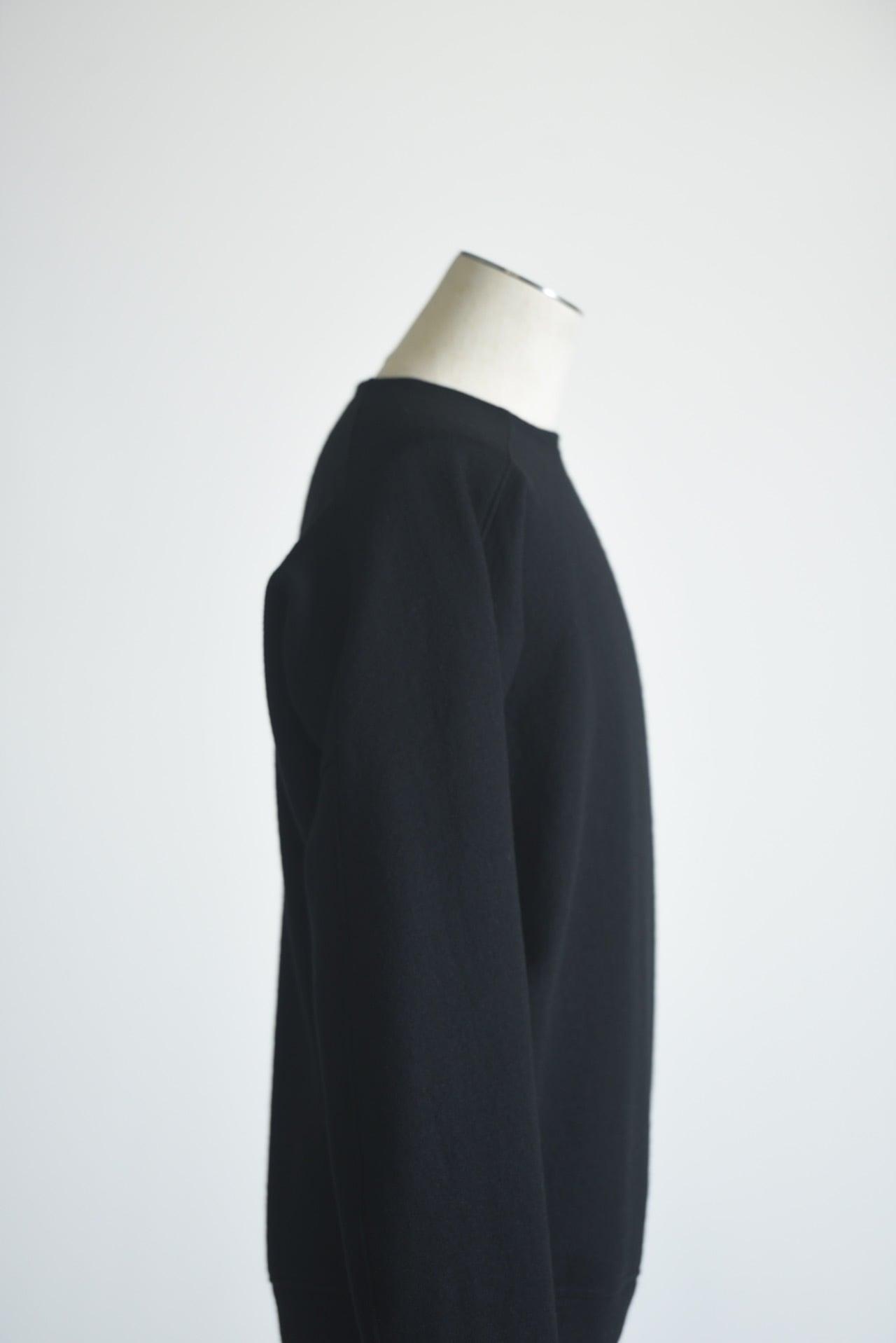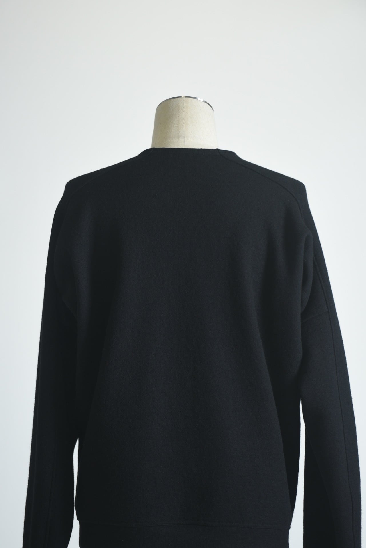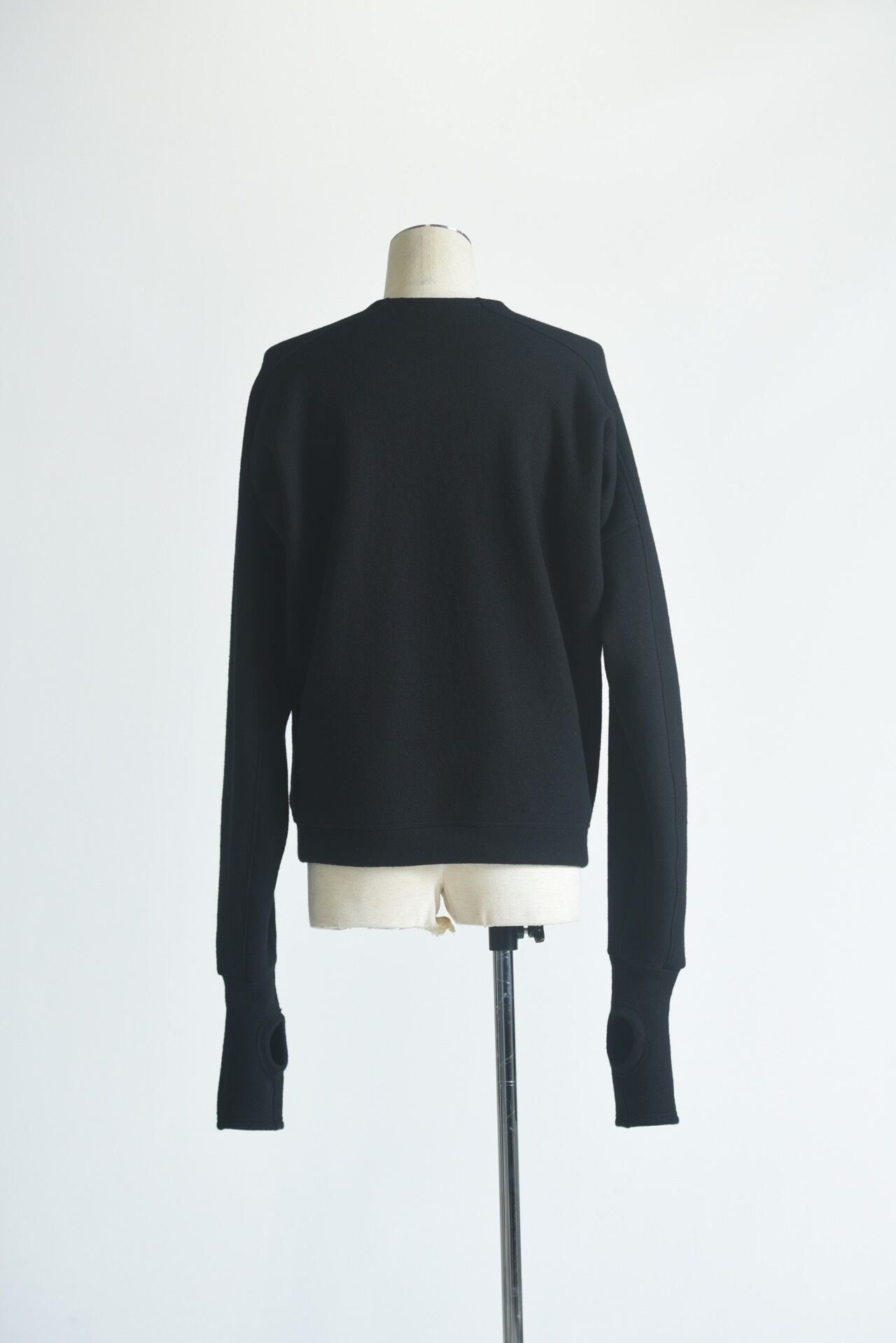 ドルマンスリーブをさらに変形させ、腕の可動域を大きく取ったウールスウェット。
