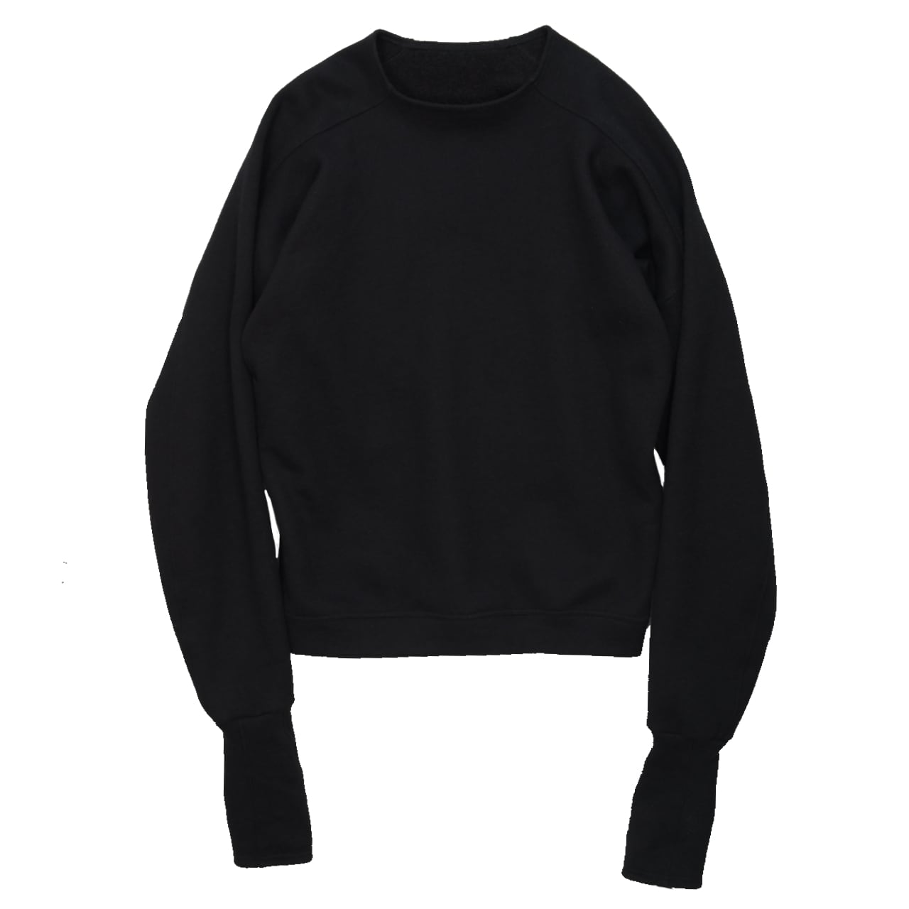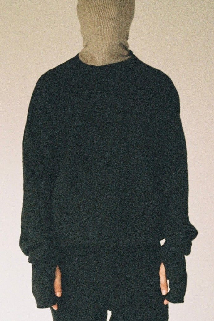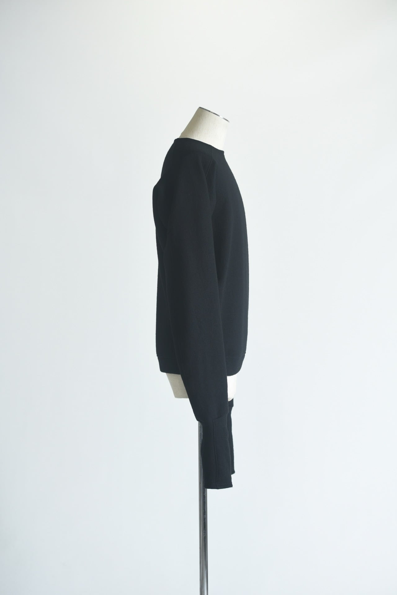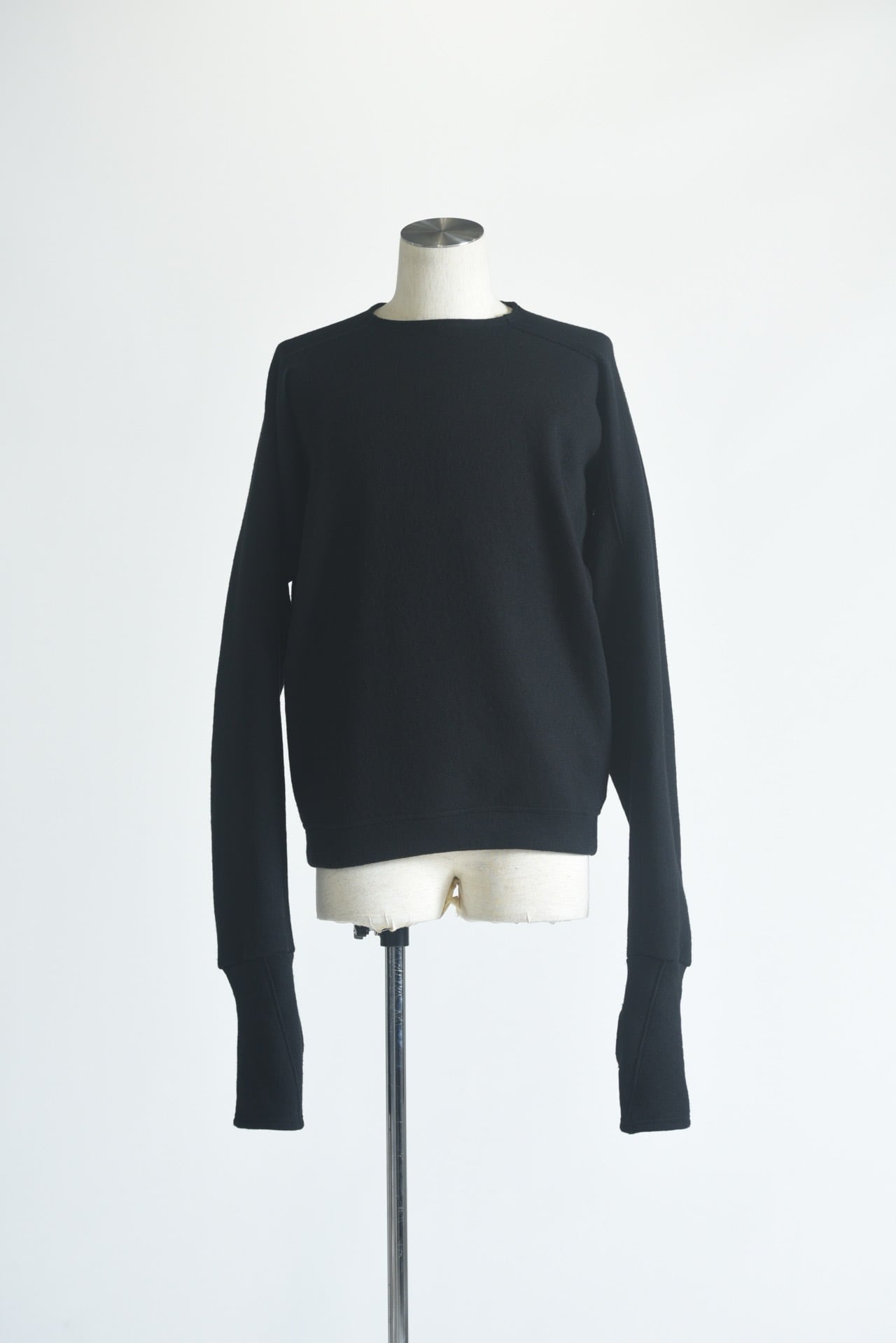 ドルマンスリーブをさらに変形させ、腕の可動域を大きく取ったウールスウェット。