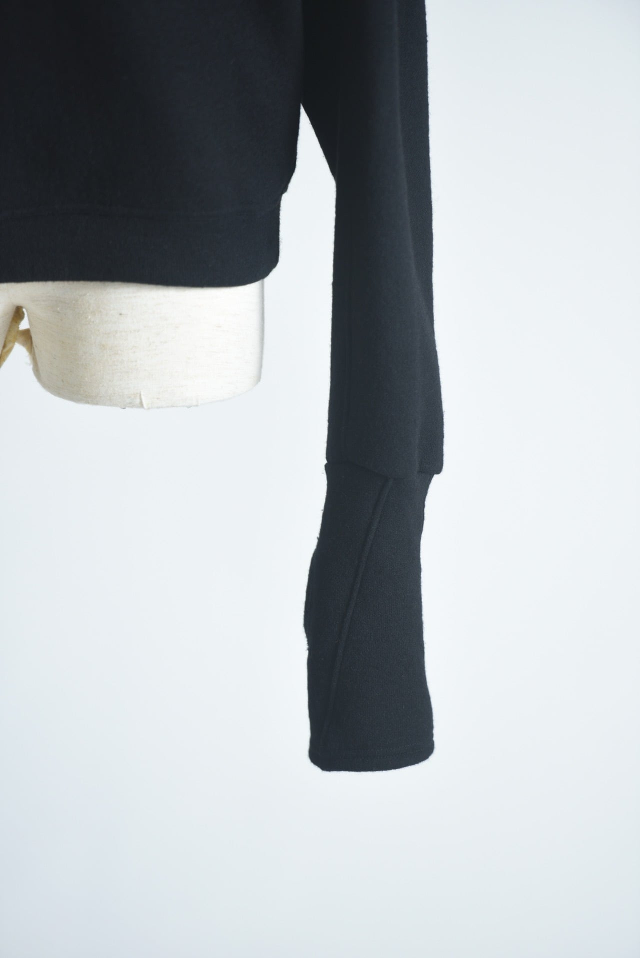 袖口にはフィンガーホールがあり、長めに取った袖を溜めて着用することでボリュームが生まれます。