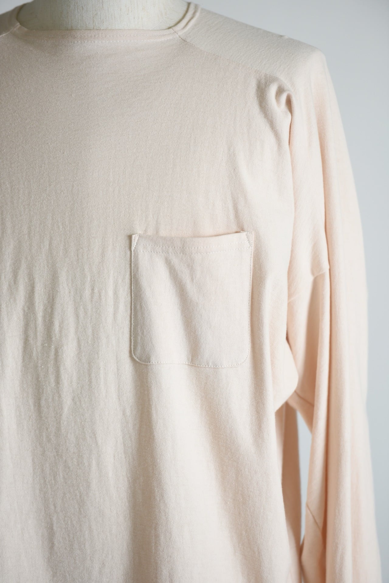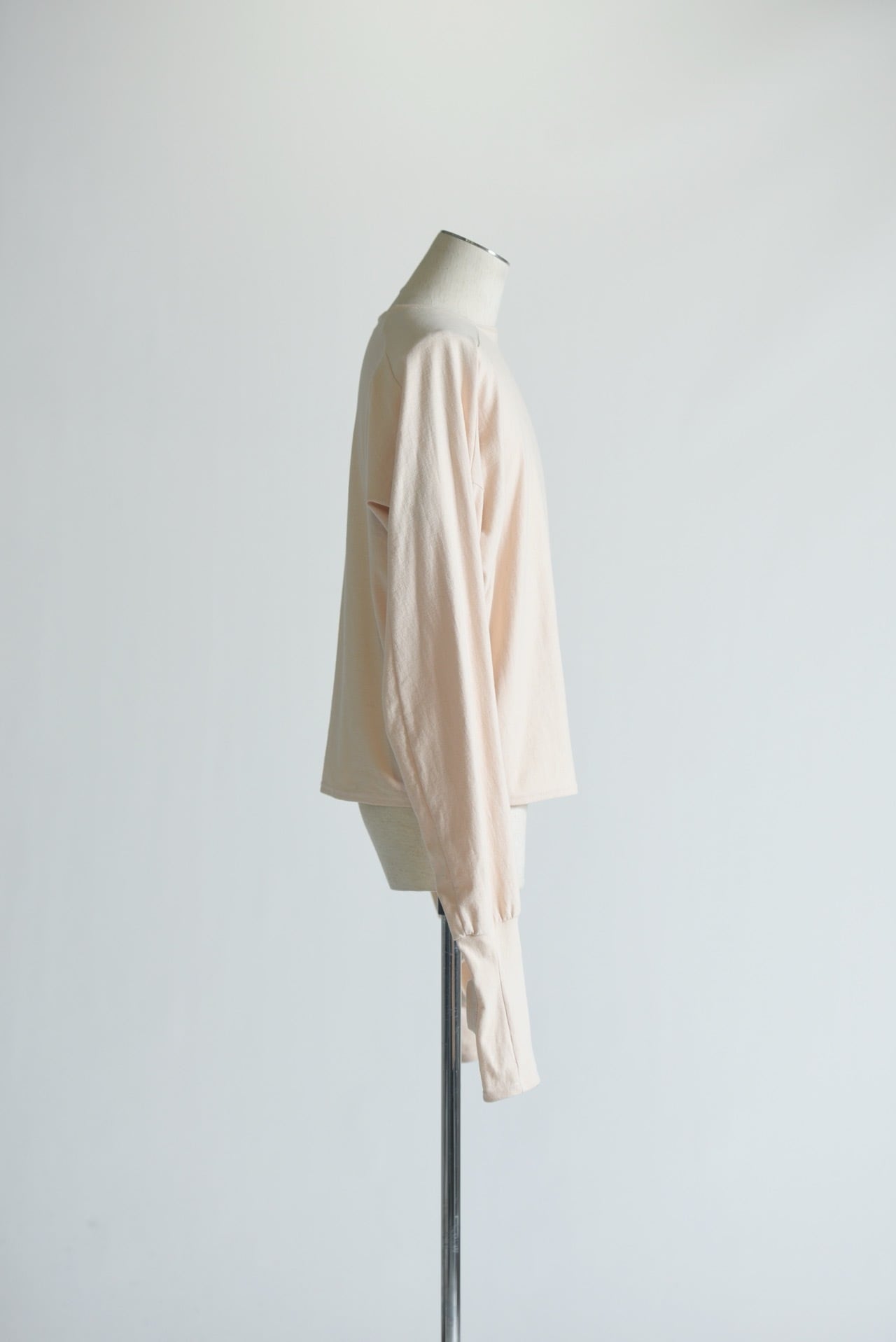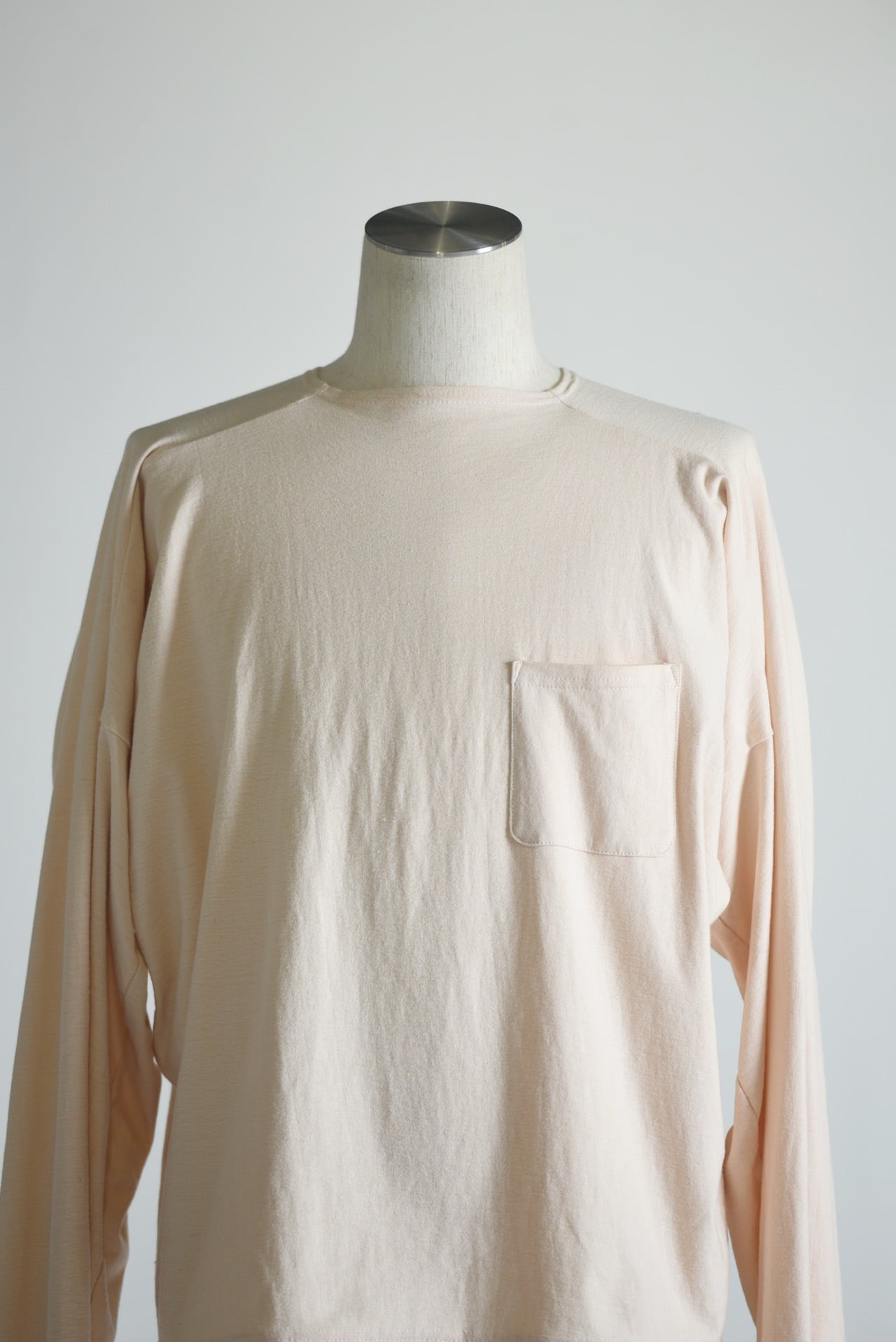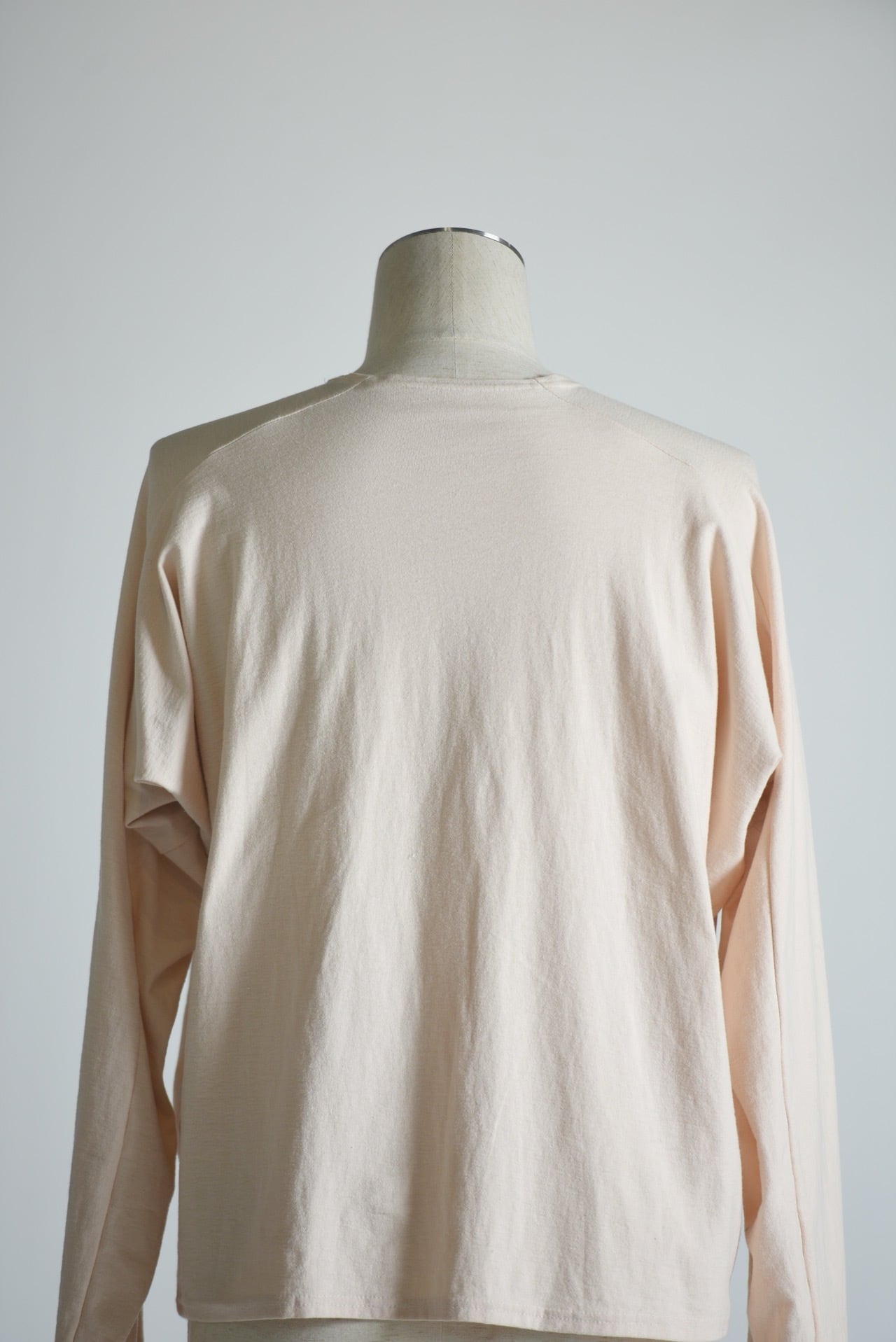 ドルマンスリーブをさらに変形させ、腕の可動域を大きく取ったコットンカットソー。