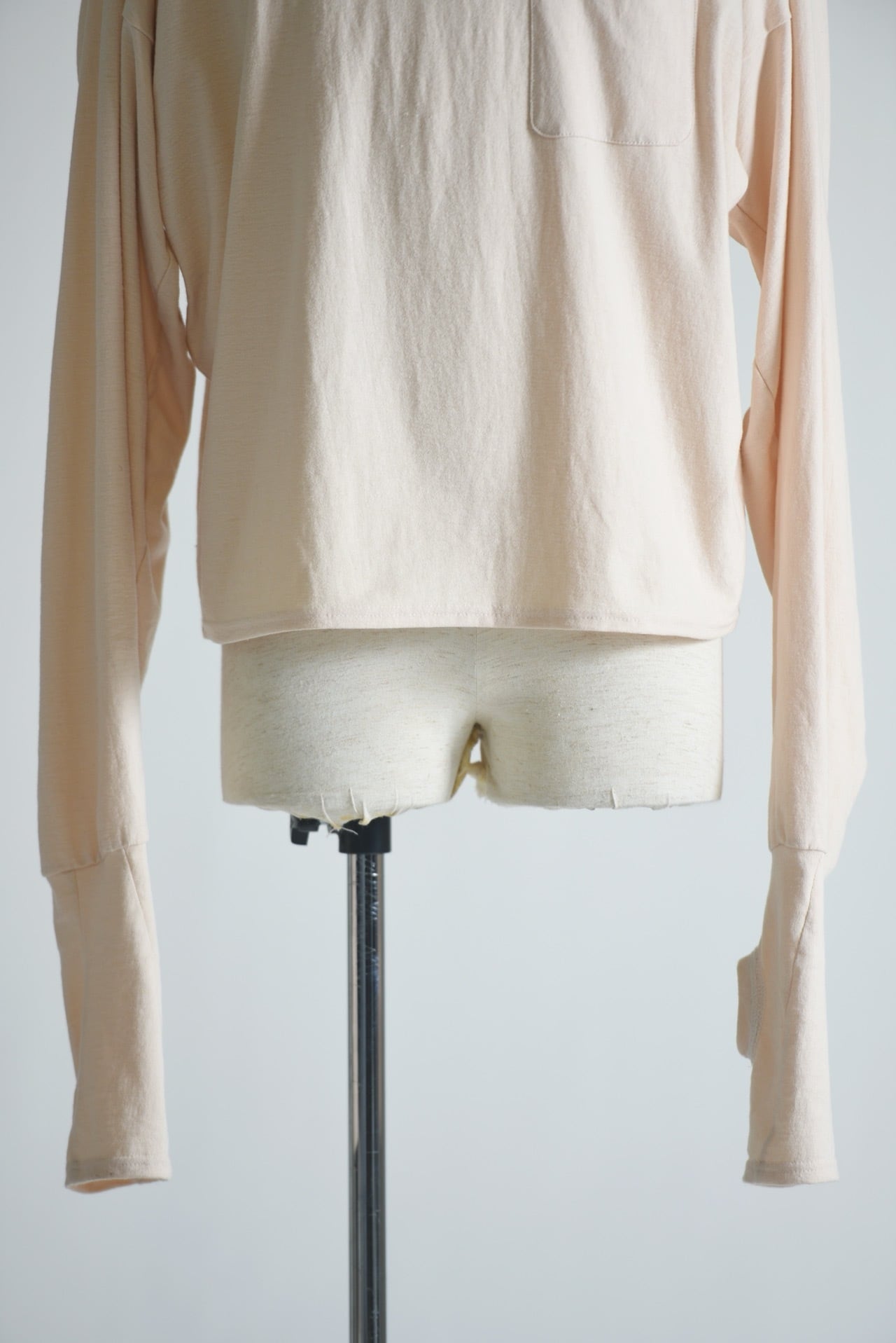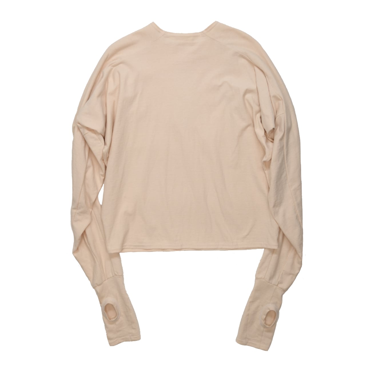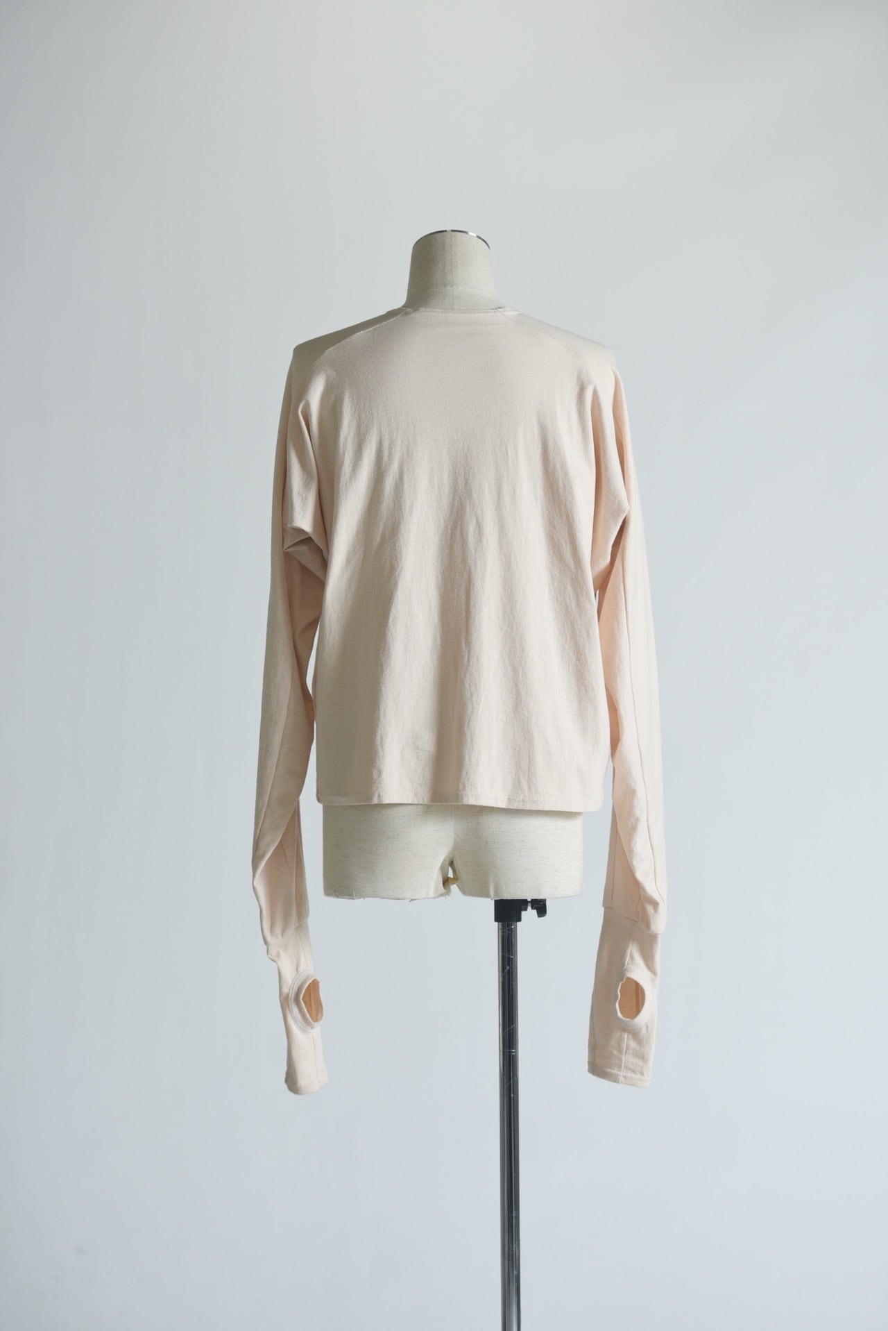袖口にはフィンガーホールがあり、長めに取った袖を溜めて着用することでボリュームが生まれます。