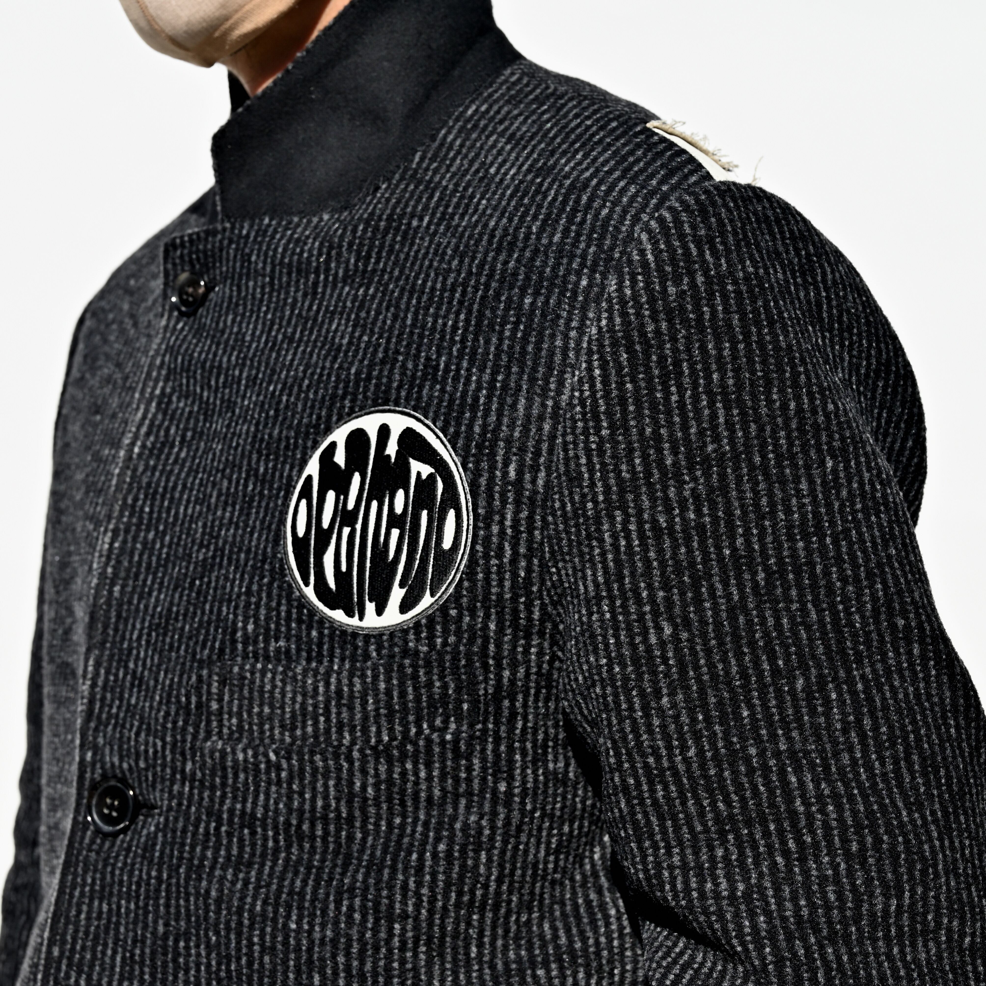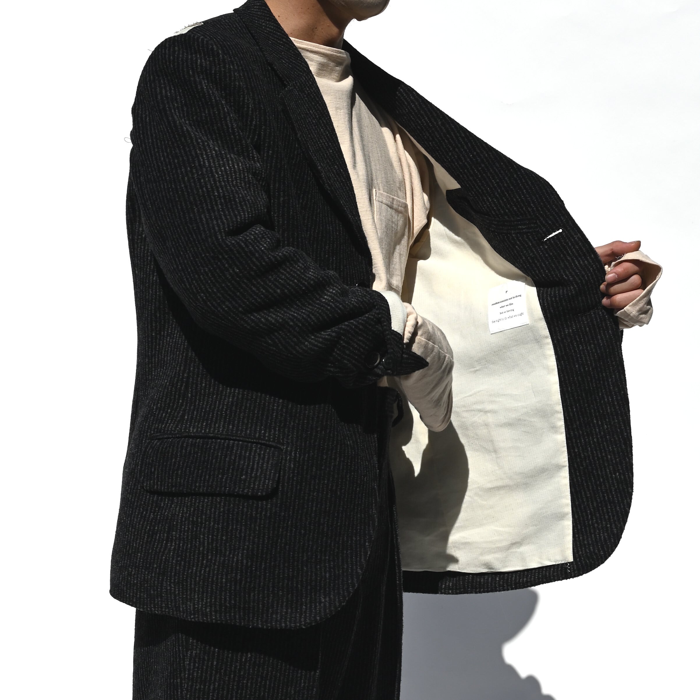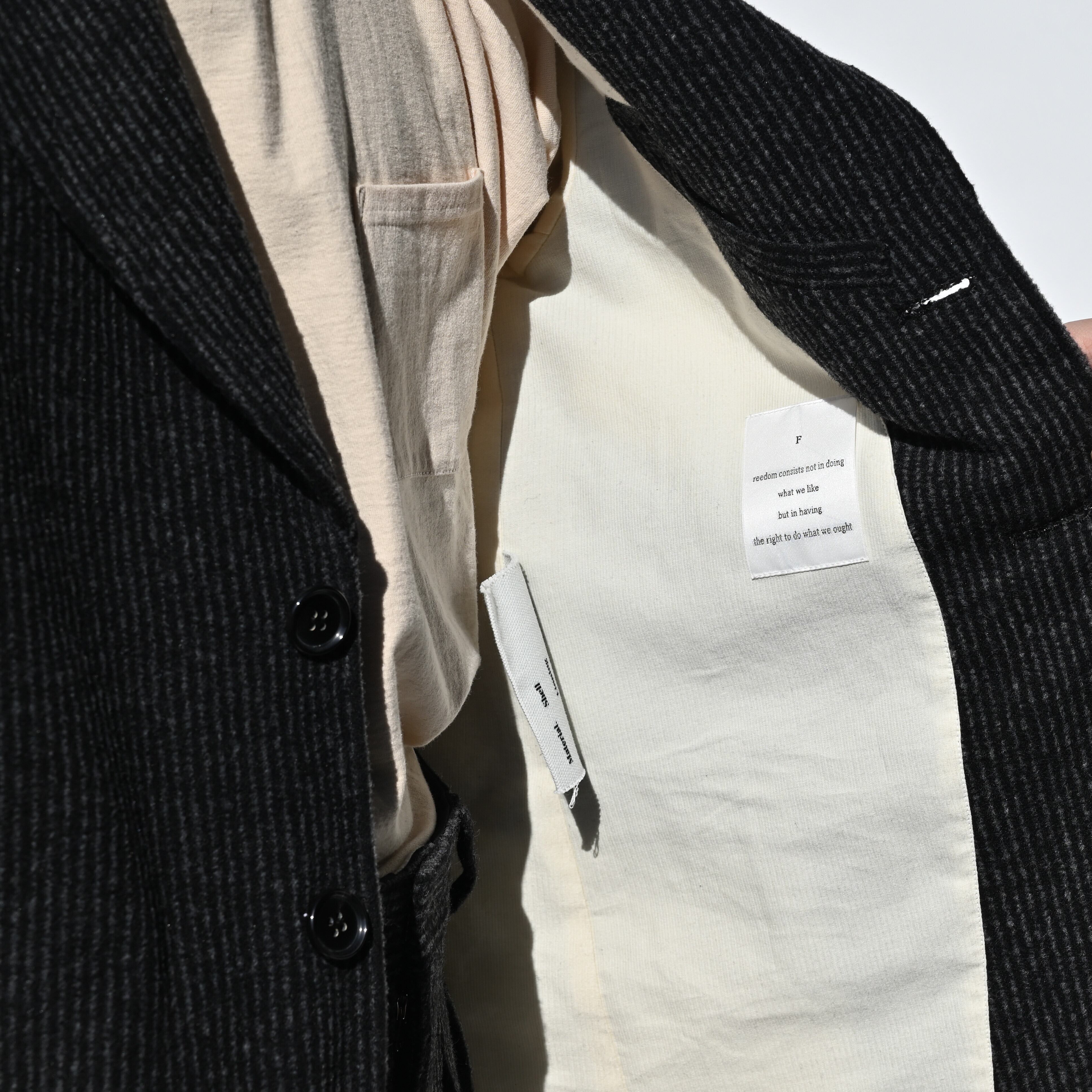 肉厚のウール混紡素材を用いた2つ釦のジャケット。