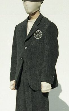 ラペル先の釦を閉め、衿を立てて着用することもできます。