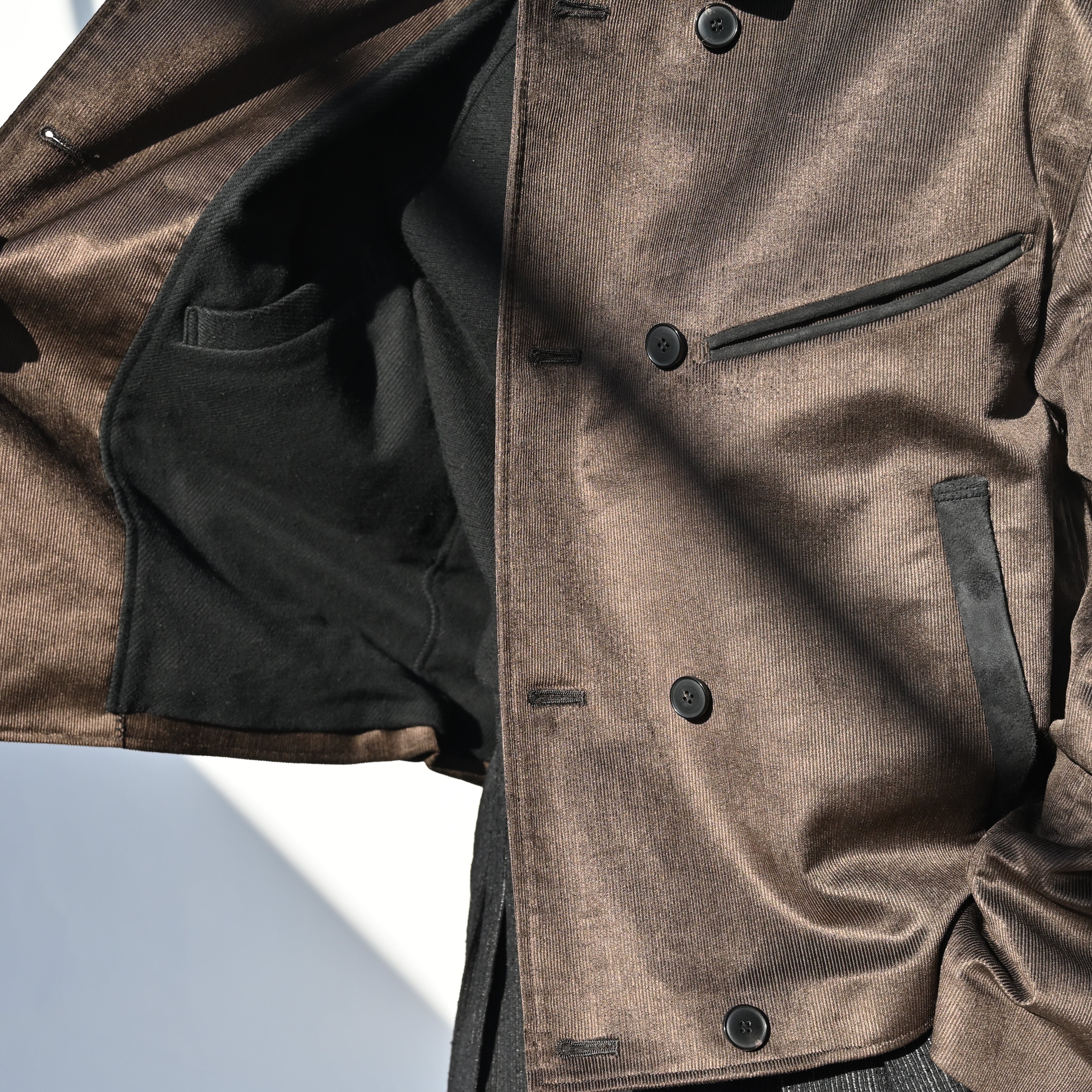 美しい光沢を帯びたコットンコーデュロイ生地を用いたジャケット。