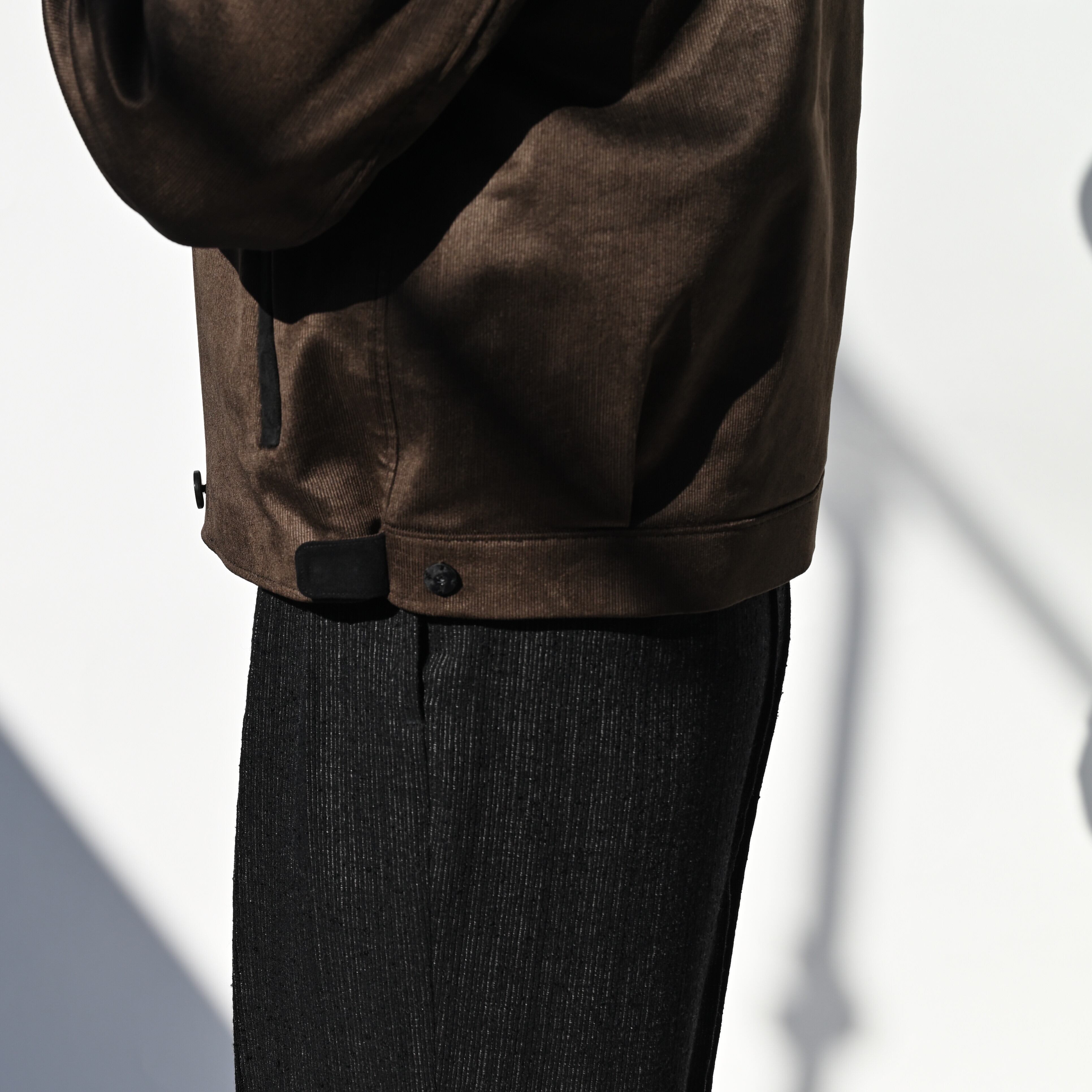 身頃裾、袖口のタブでシルエットの調整が可能です。