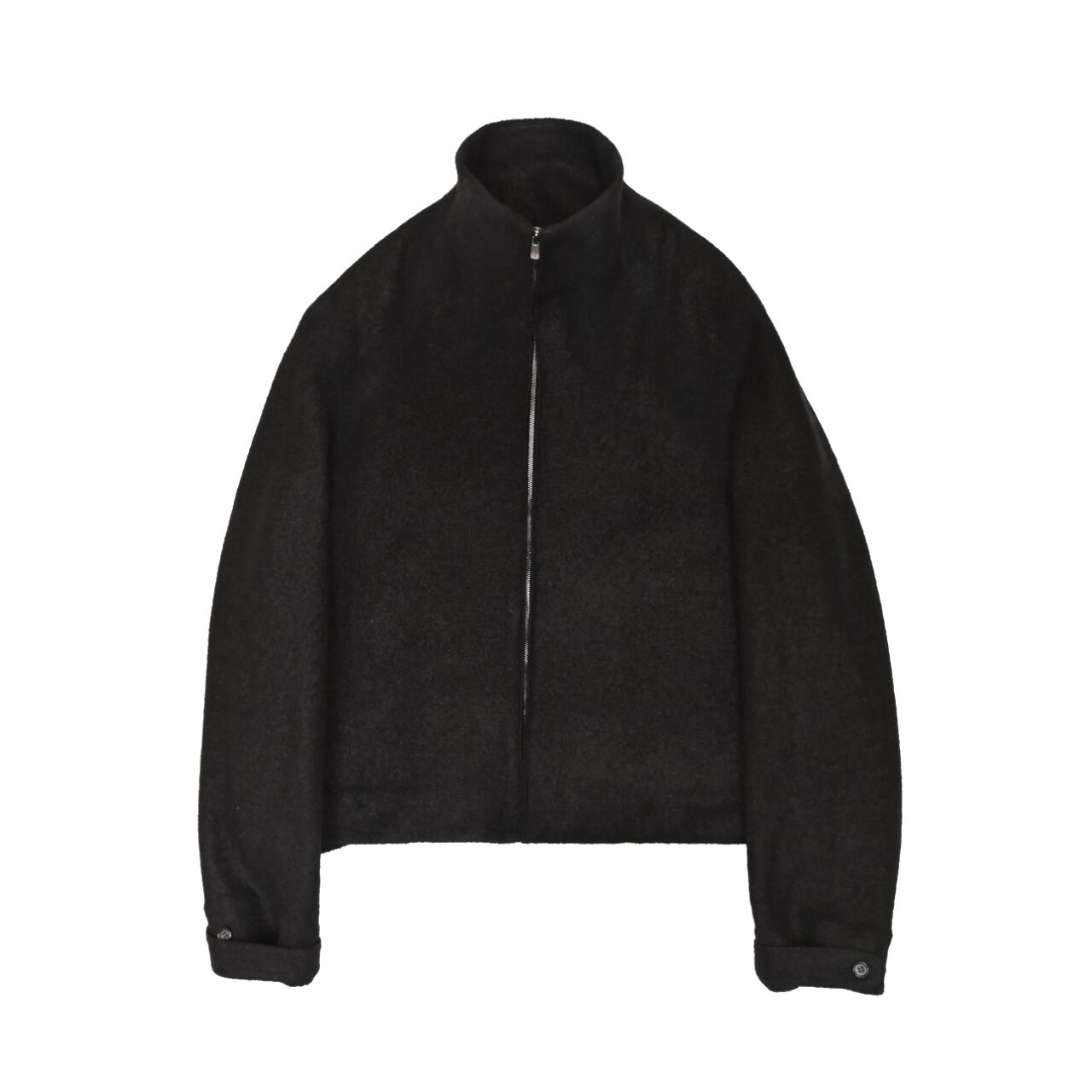 ウールジャージー素材を用いて作られたフロントジップのハイネックブルゾン。